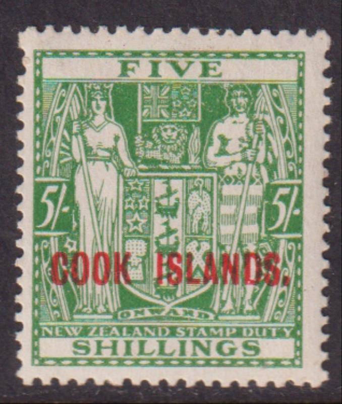 Cook Isl 1943 5/- Arms, WT paper, mult upright wmk. SG 132. Cat £19. Mint. (Image)