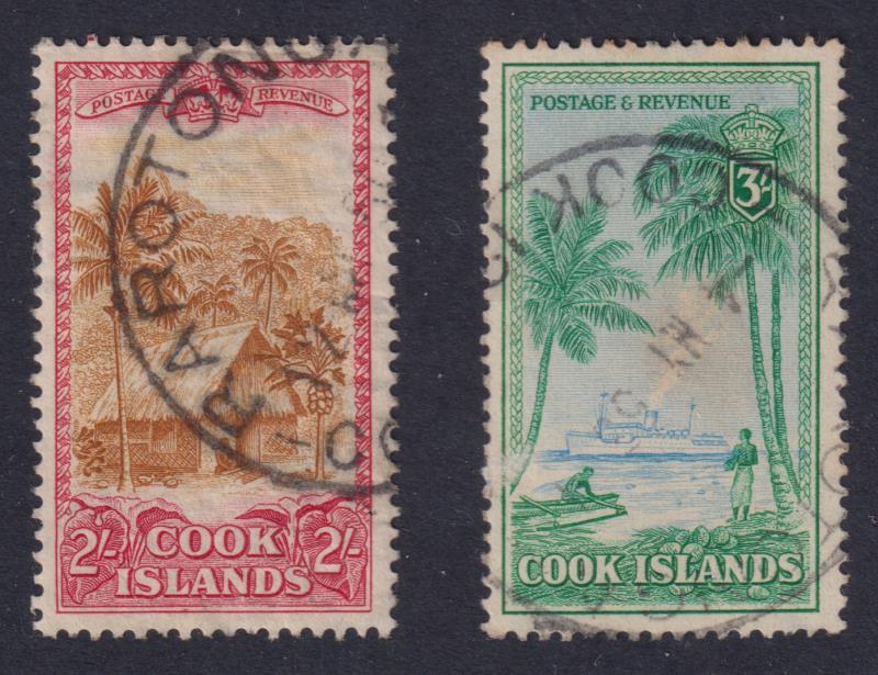 Cook Isl 1949 2/- & 3/- Pictorials, cds. SG 158, 159. Cat £50. FU. (Image)