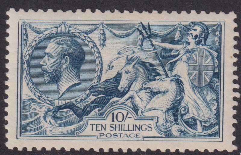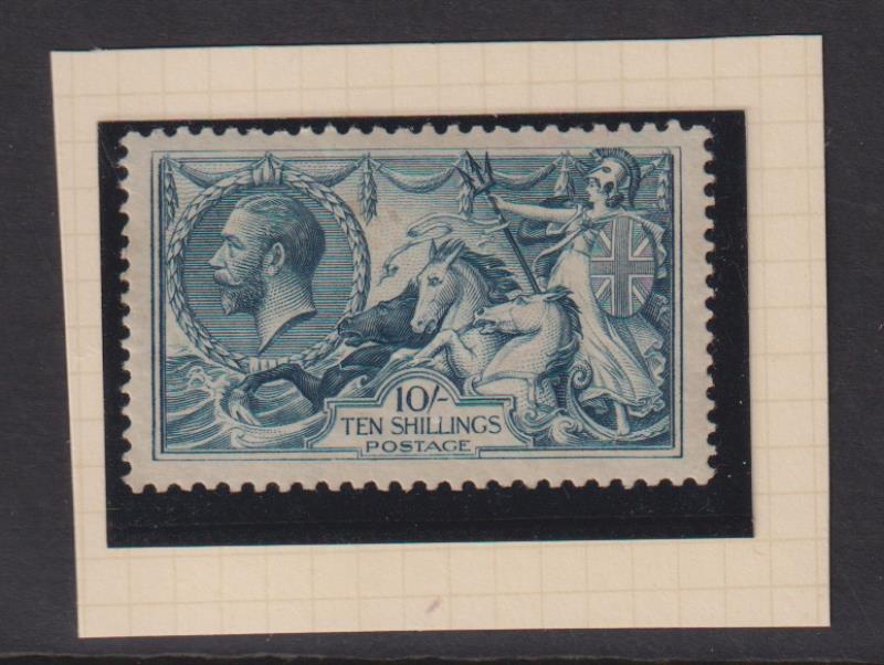 1919 10/- Seahorses, BW printing, w/c. SG 417. Cat £425. Mint. (Image)
