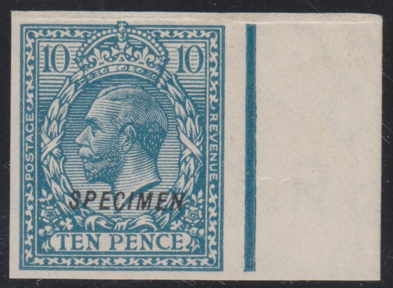c1924 10d GV imperf with RH selvedge, ovpt "SPECIMEN" (small italics, SG "Type 23"), wmk block cypher, with gum. SG Spec