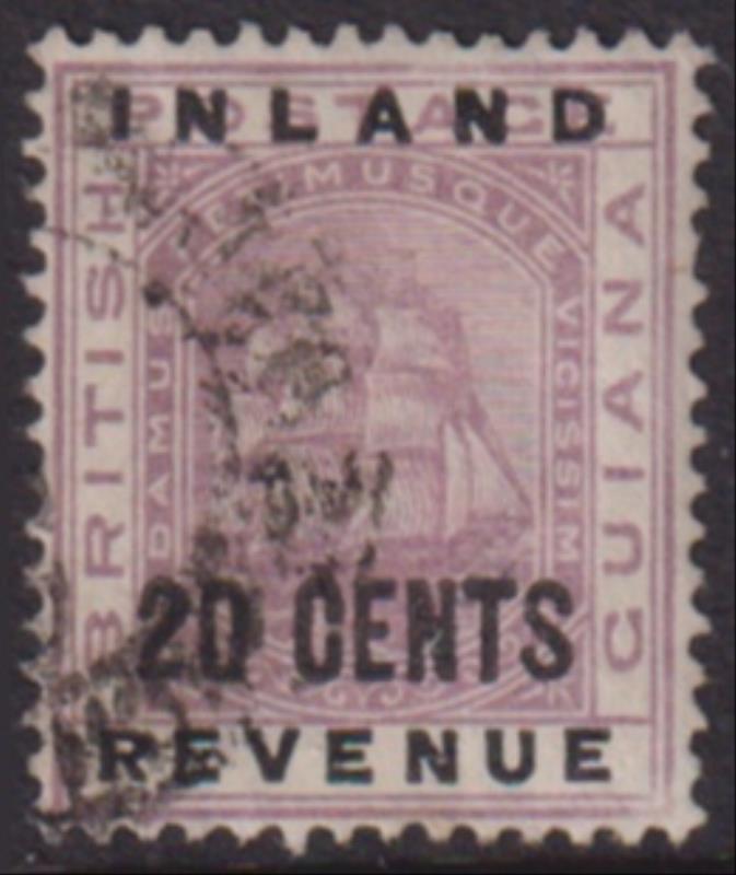 2545 U imageBritish Guiana 1888 20c Ship, INLAND REVENUE ovpt. SG 182. Cat £26. GU. (Image)