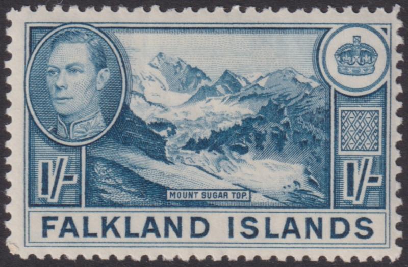 2688 M imageFalkland Isl 1938 1/- GVI dull greenish blue. SG 158a. Cat £60. Mint. (Image)
