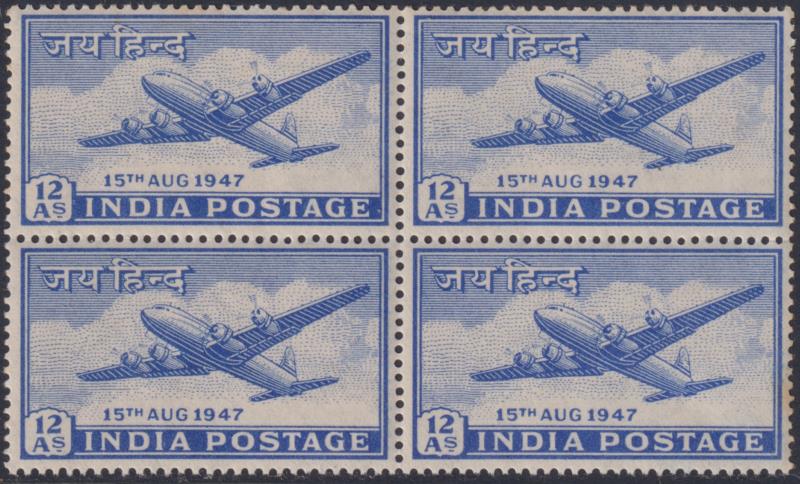2779 * imageIndia 1948 12A India-UK Air Service Inauguration black & ultramarine block of 4. SG 304. MUH. (Image)