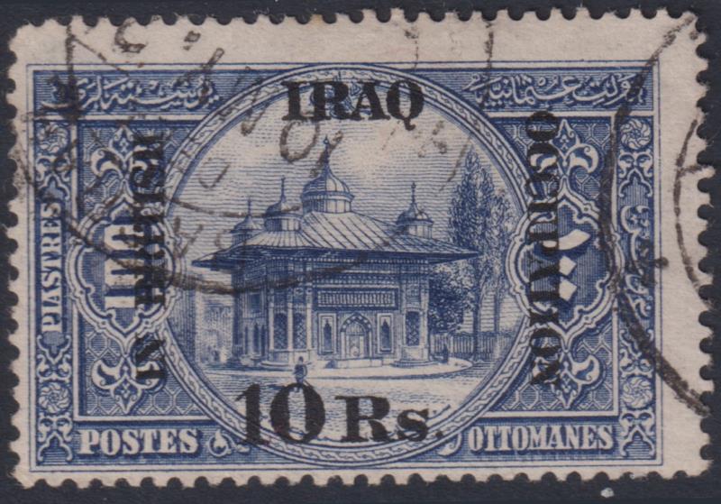 2783 U imageIraq 1918 10R "In British Occupation" ovpt (type I) on Turkey 100P indigo, o/c. SG 14. Cat £35. FU. (Image)
