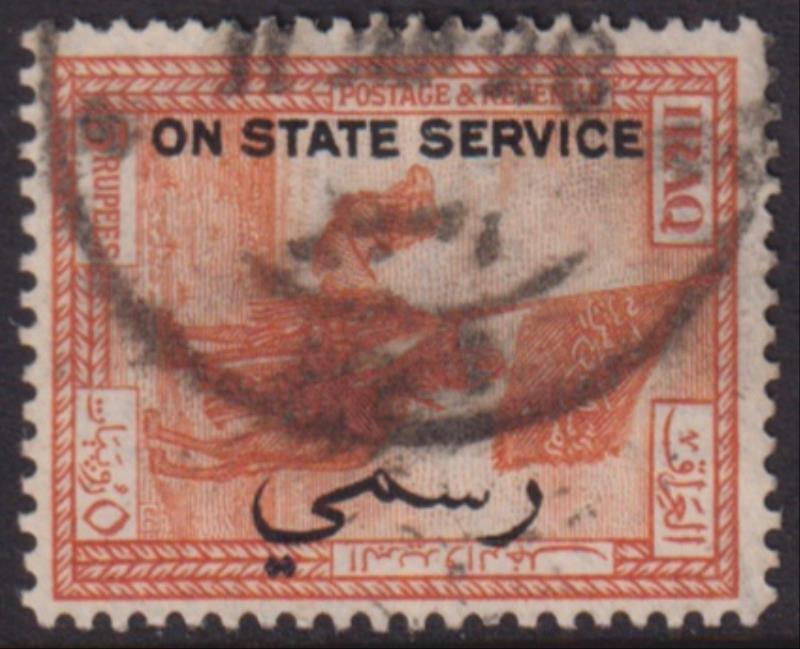 2788 U imageIraq 1924 5r Camel Corps with On State Service surcharge. SG O76. Cat £75. GU cds. (Image)