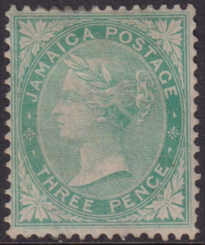 2797 M imageJamaica 1870 3d QV green, crown CC wmk. SG 10. Cat £160. Mint. (Image)