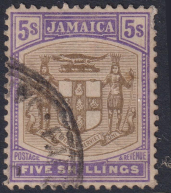 2798 U imageJamaica 1905 5/- Arms grey & violet, p14, mult crown CA wmk, top value. SG 45. Cat £65. GU/FU. (Image)