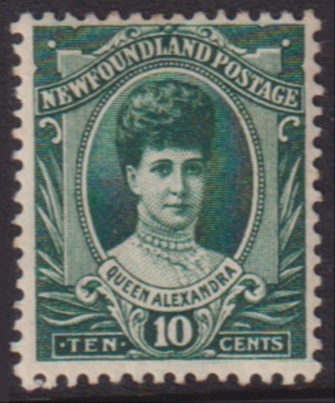 2889 M imageNewfoundland 1911 10c Queen Alexandra, faint tone on back of top perfs. SG 125. Cat £48. Mint. (Image)