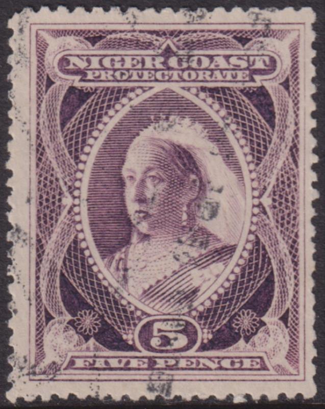 2896 U imageNiger Coast 1898 5d QV purple, p14½-15. SG 70c. Cat £250. FU. (Image)
