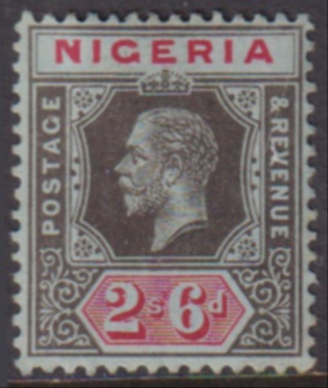 2899 M imageNigeria 1914 2/6d GV black & red on blue, mult crown CA wmk. SG 9. Cat £20. Mint. (Image)