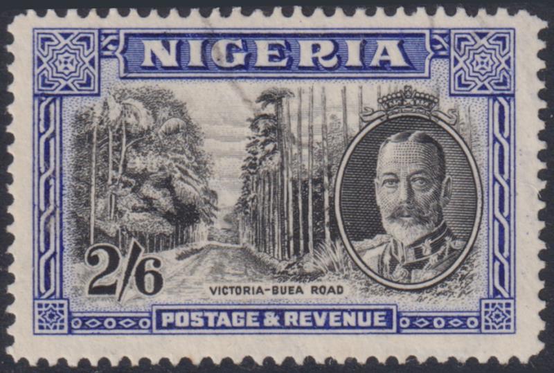2903 U imageNigeria 1936 2/6d GV & Forest Road black & ultramarine. SG 42. Cat £48. FU. (Image)