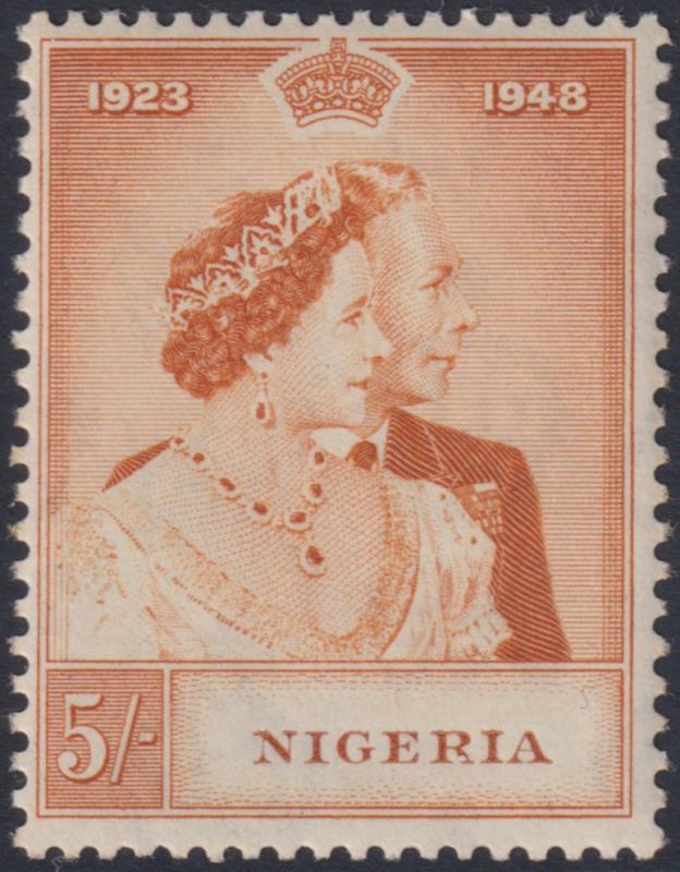 2908 * imageNigeria 1948 5/- Silver Wedding. SG 63. Cat £18. MUH. (Image)