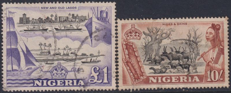 2909 * imageNigeria 1953 10/- & £1 QEII Pictorials. SG 79, 80. Cat £29. Both FU. (Image)