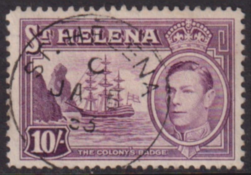 3017 U imageSt Helena 1938 10/- GVI Badge of St Helena. SG 140. Cat £25. FU. (Image)