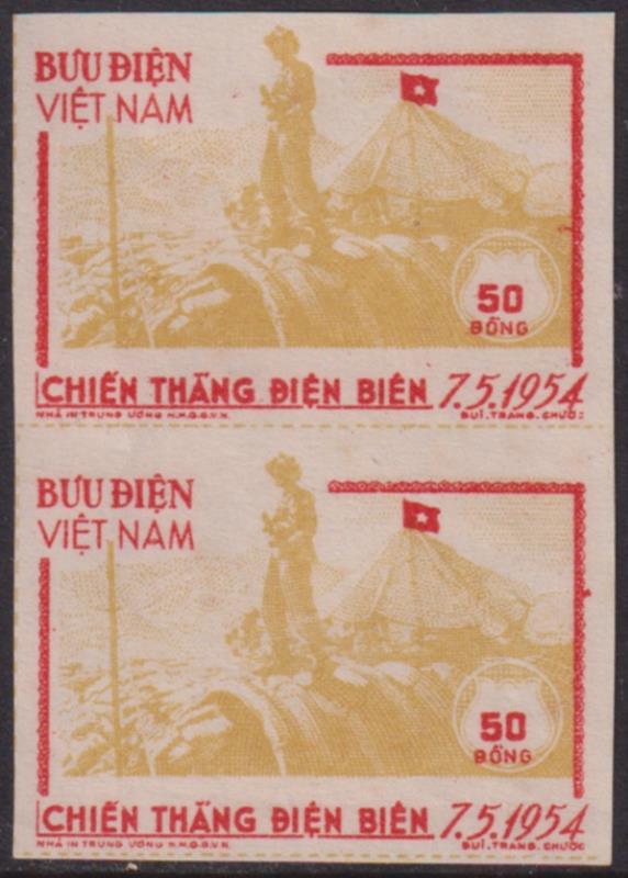 Vietnam-North 1954 50d Dien Bien Phu imperf vert pair. SG N17. MUH. (Image)