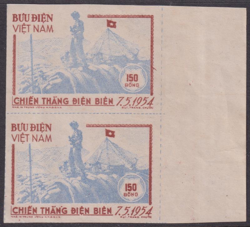 Vietnam-North 1954 150d Dien Bien imperf vert pair. SG N18. MUH. (Image)