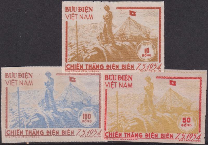 Vietnam-North 1954 Victory at Dien Bien Phu set, perf. SG N16a, 17a, 18d. MUH.