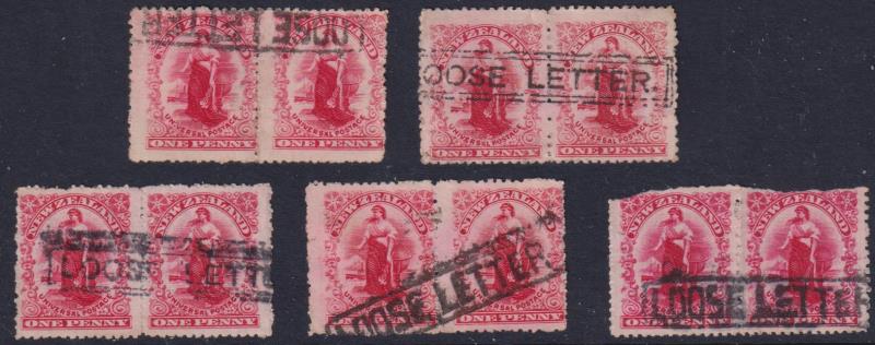 "LOOSE LETTER" framed rectangular h/ss, 5 near complete strikes c1905-8 period on 1d Universal horiz pair x 5 (3 with