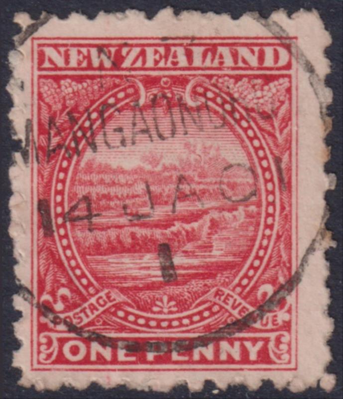 Mangaonoho (WG 1893-1963) near complete A-class cancel (14 JA 01) on 1900 1d Terraces pictorial. Wooders 5. (Image)