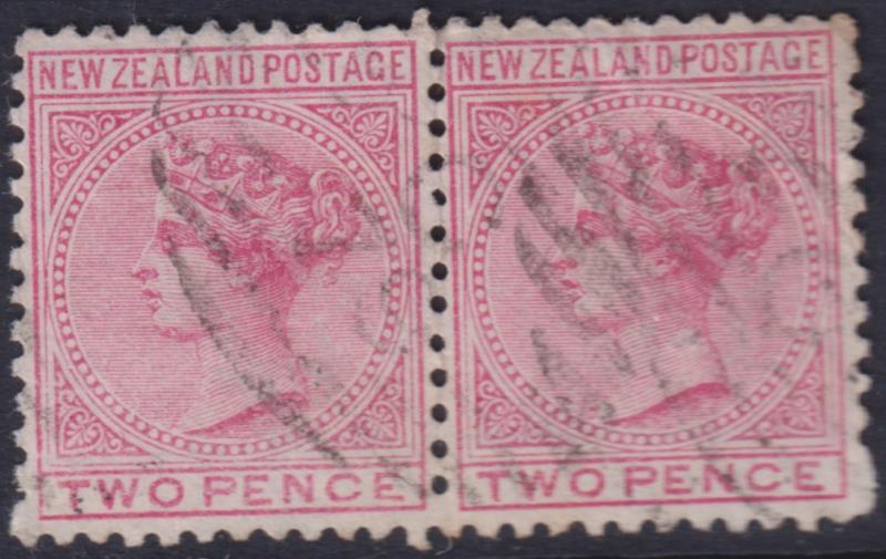 Waiau (CH 1863-1992) 2 good (rather light but legible) strikes of "C/79" in bars obliterator on 2d FSF horiz pair, p12 x 11½.