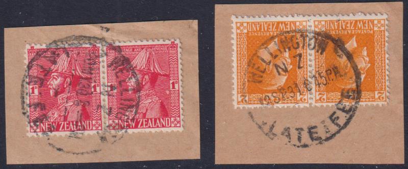 "Wellington/Late Fee" 30mm C-type cds, 2 good-fine complete strikes on neat pieces: 20 MY 30 (on 1d GV pair), 12 SP 31 (on 2d