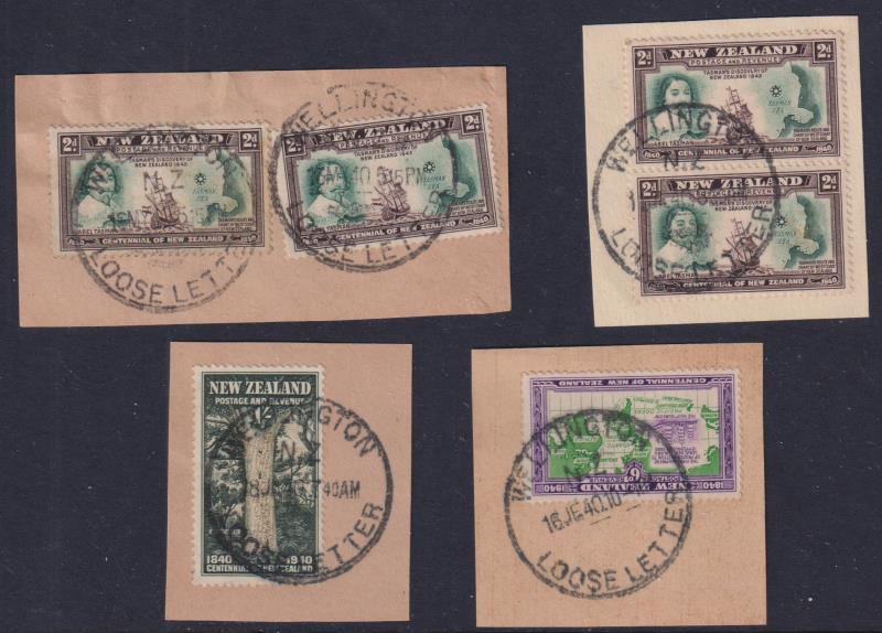 "Wellington/Loose Letter" 33mm C-type cds, 4 fine complete strikes c MY-JL 40 on 4 neat pieces franked 1940 Centennial stamps