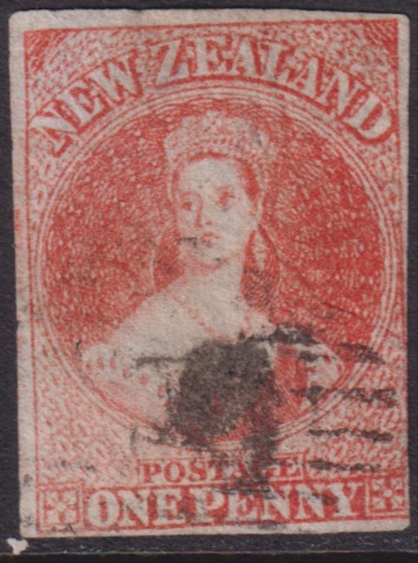 FFQ Chalon 1d orange-vermilion, imperf 4 uneven margins, star wmk. SG 33. Cat £350. GU/FU. (Image)