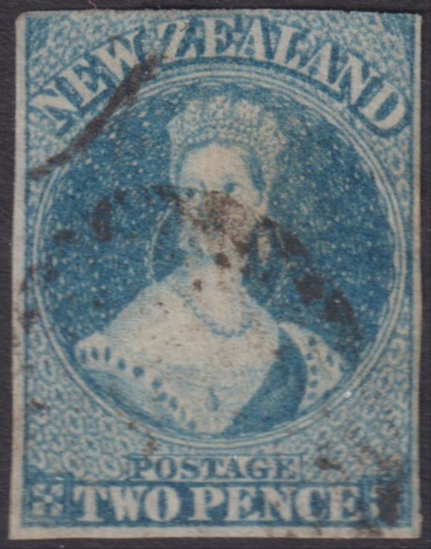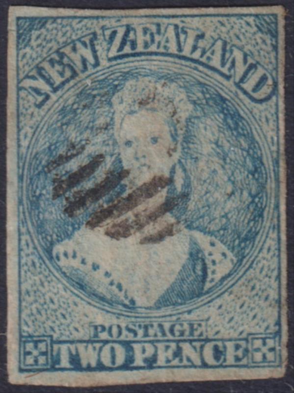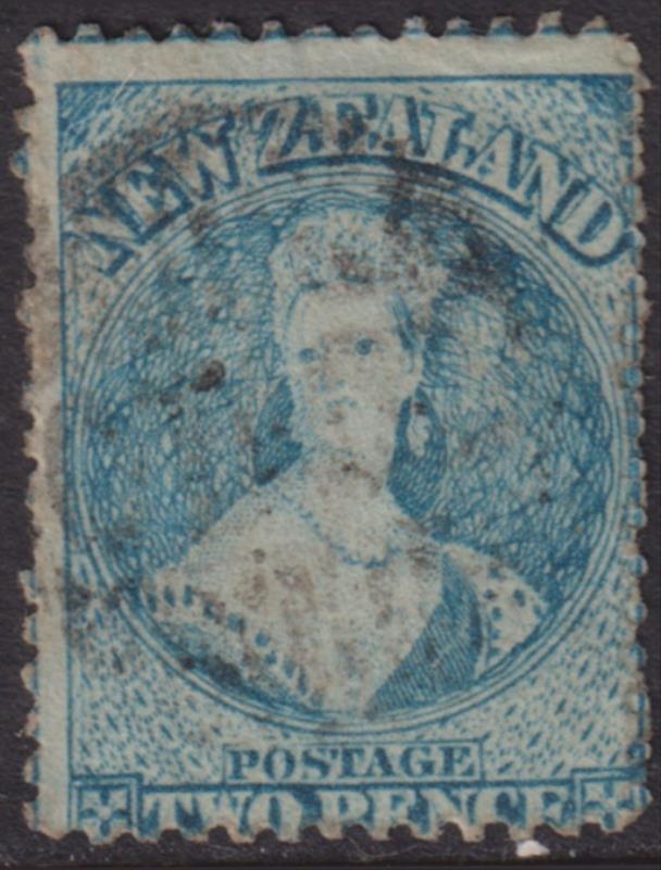 FFQ Chalon 2d pale blue (worn plate), p13, NZ wmk, light barred cancel. SG 105. Cat £225. FU. (Image)
