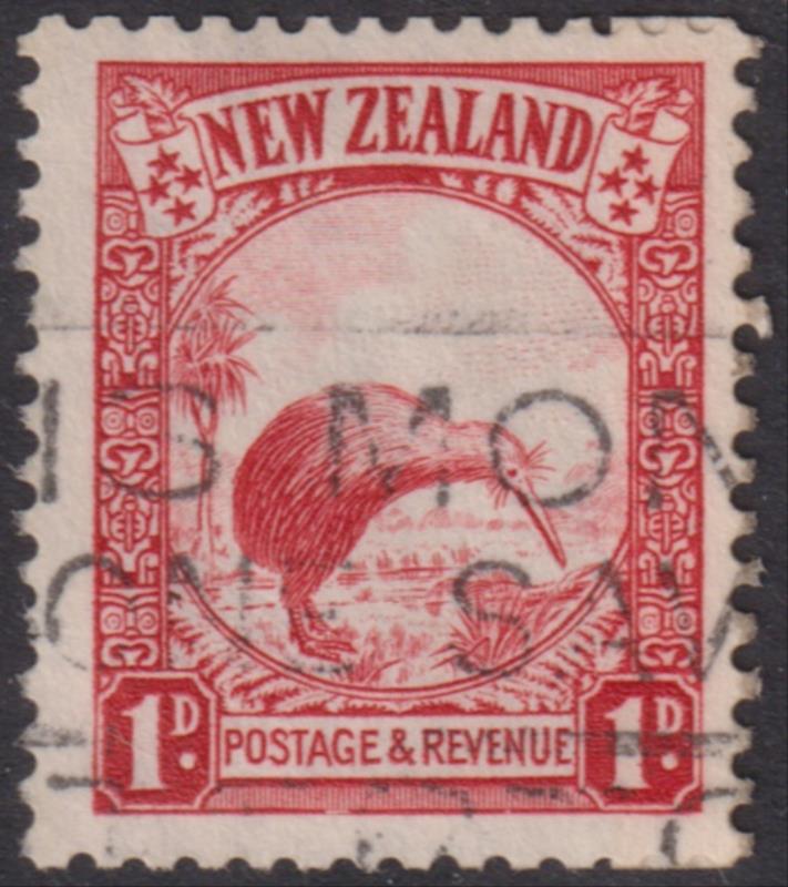 1935 1d Kiwi, p14 x 13½, single wmk, example from vending machine with coil join selvedge on rear. FU. (Image)