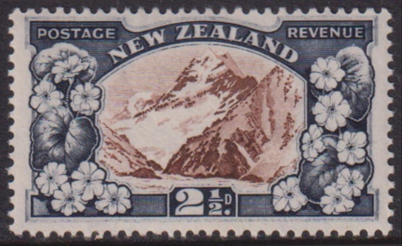 1935 2½d Lilies chocolate & blue-slate, p14-13 x 13½, single-lined wmk, vert mesh, invtd wmk. CP K5a(Y). Cat $85. VLH