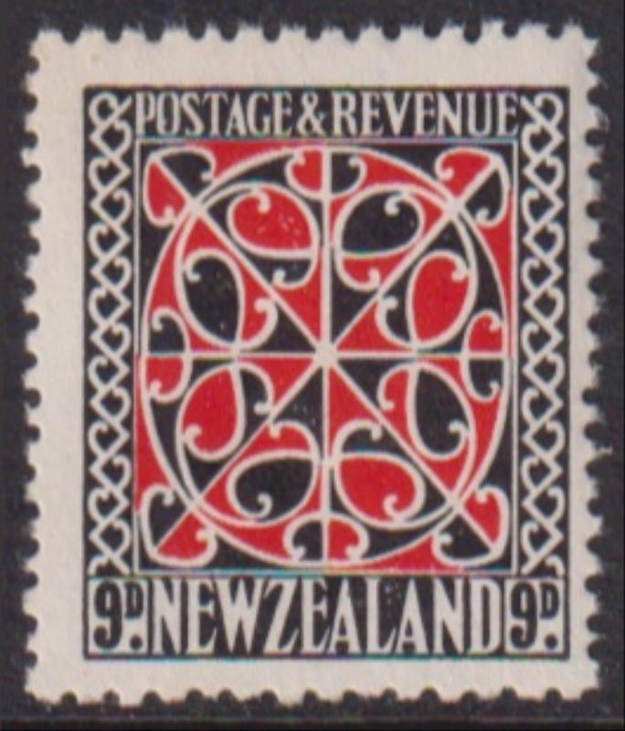 1935 9d Panel red & grey. Jury cat $50. Mint.