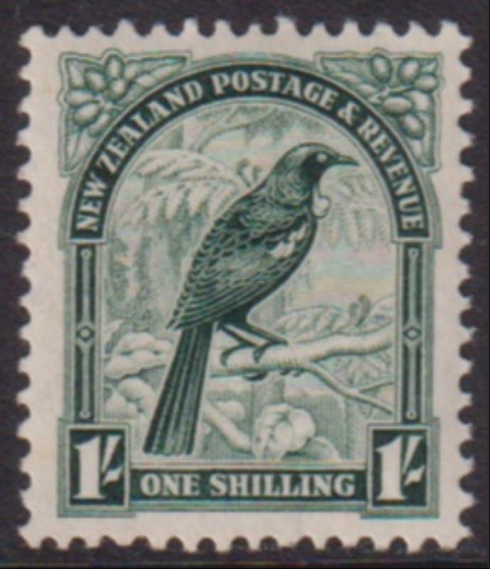 1935 1/- Tui, p14 x 13½, single wmk. CP L12. Cat $90. MUH.