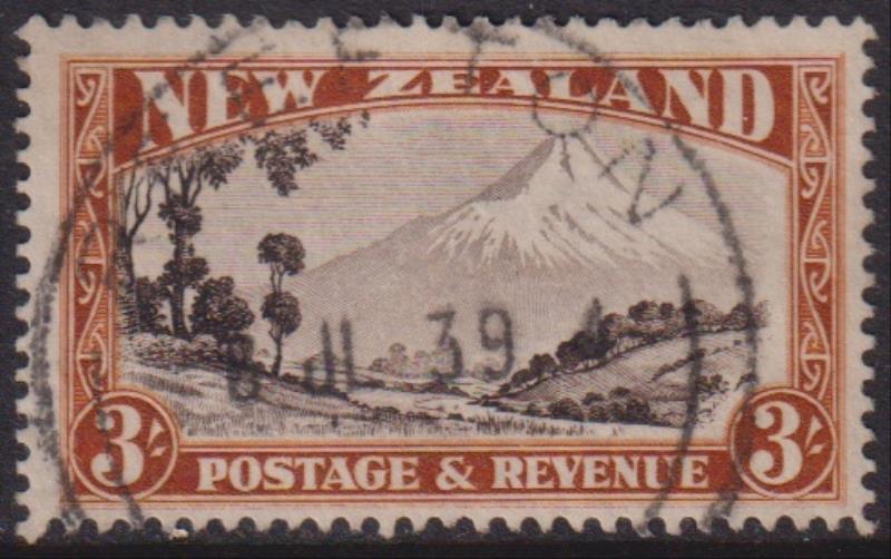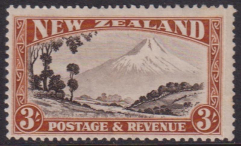 1936 3/- Mt Egmont, p14-13 x 13½, single wmk. CP L14d. Cat $50. Mint. (Image)