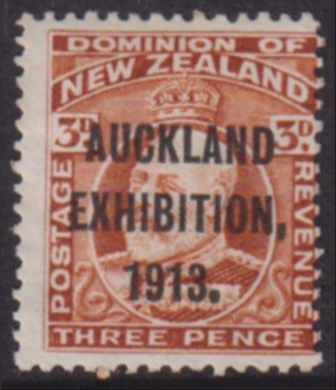 1913 3d Auckland Exbn. O/c to right. Jury cat $325. Unused, mint no gum. (Image)