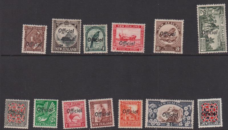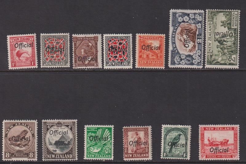 1935 Pictorials simplified set of 13. The 9d red & grey (with green ovpt) with some colour transfer to gum. Jury cat $950.