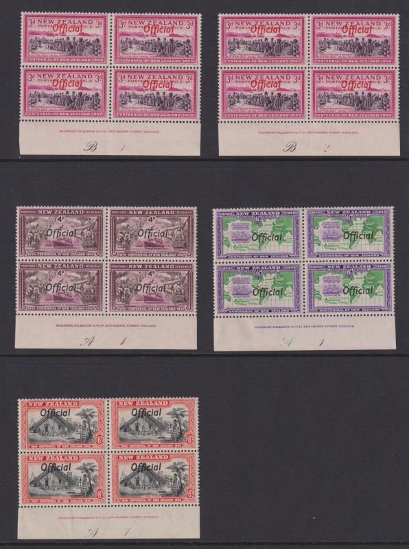 1940 Centennial colln plate blks complete except no 2d (A9), 9d & 1/-. A few blemishes incl the key high vals. CP cat $5245.