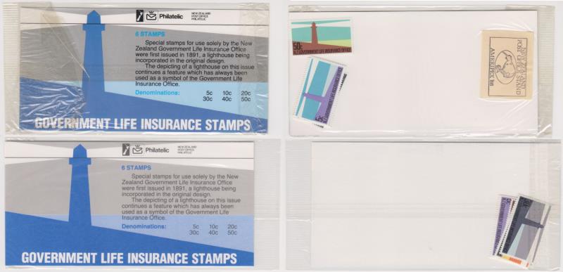1613 * image1981-6 Government Life x 2 diff sealed cellophane presentation packs, one with AMERIPEX'86 sticker, each with MUH set. (Image)