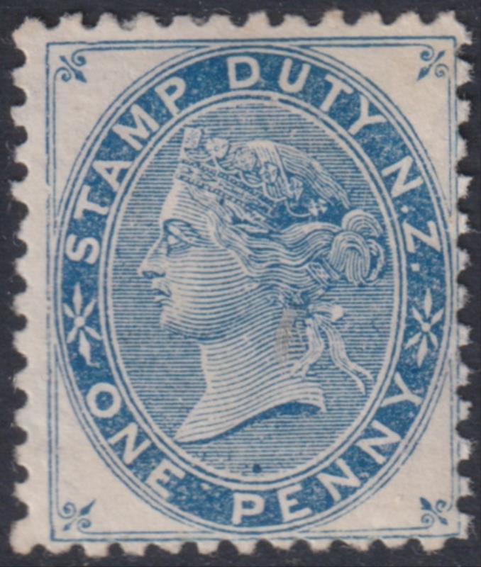 1615 U image1882 1d Stamp Duty blue, light indistinct horiz oval obliterator, small thin. CP Z1b. Cat $100. (Image)