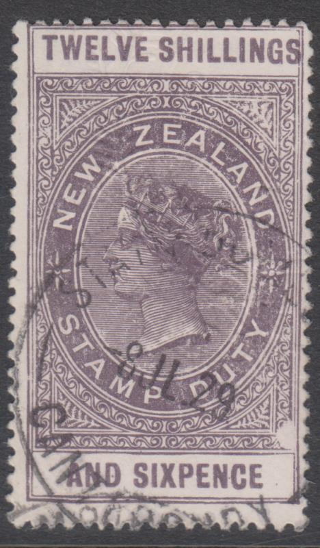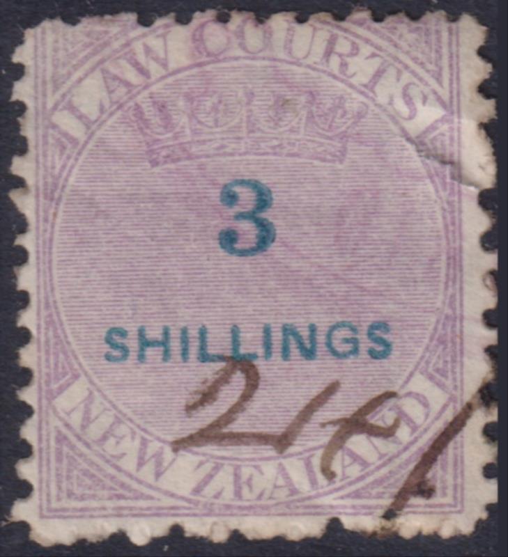1879 3/- Law Courts, p11¾ , "S" with cross stroke in "SHILLINGS". Kiwi R152bb. (Image)