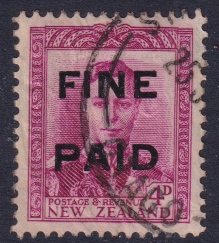 1944-51 4d GVI FINE PAID, unpunched. Kiwi R119. Cat $150. Fine cancel.