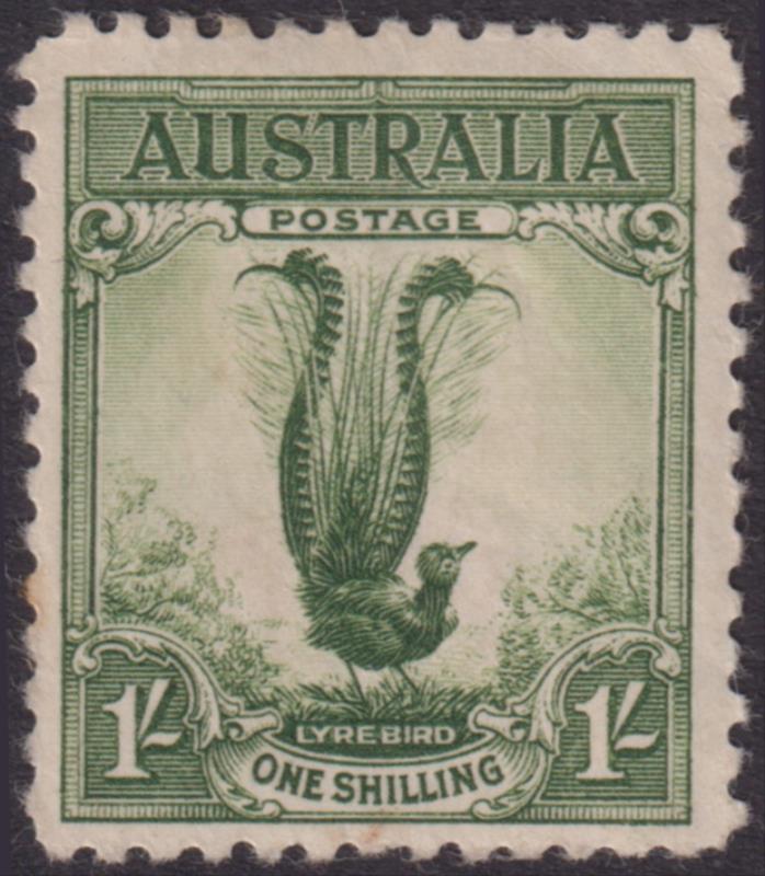 1932 1/- Lyrebird green. SG 140. Cat £45. Mint.