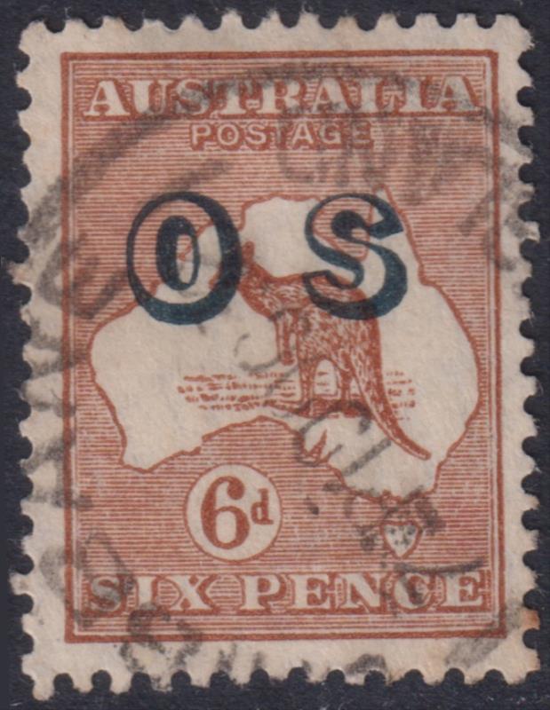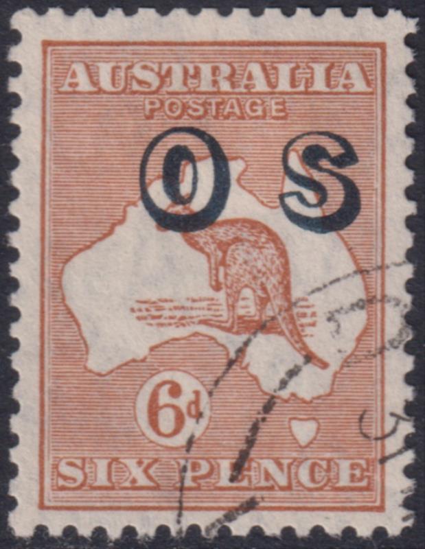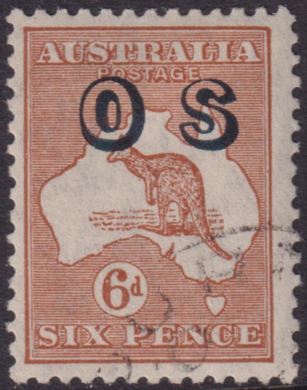 1932 6d Roo chestnut, ovpt "OS". SG O127. Cat £55. FU. (Image)
