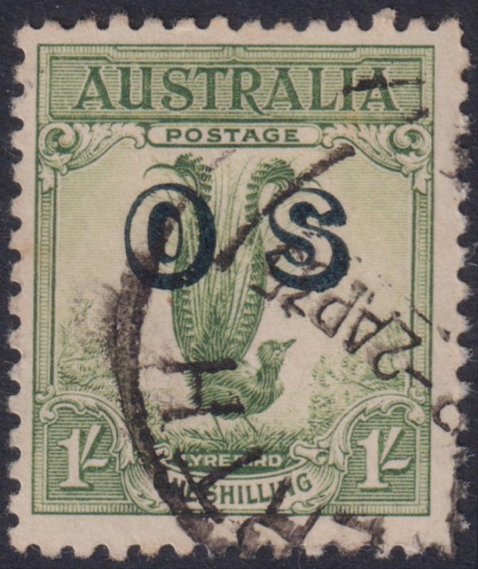 1932 1/- Lyrebird, OS ovpt. SG O136. Cat £30. FU. (Image)