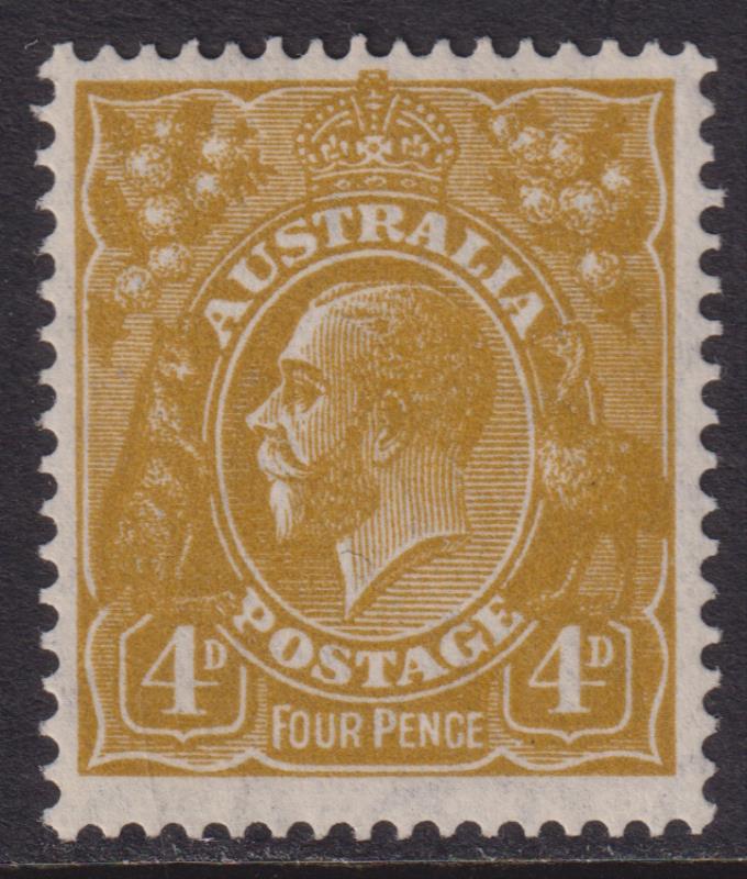 1933 4d GV yellow-olive, p13½ x 12½, C of A & crown wmk. SG 129. Cat £24. Mint. (Image)