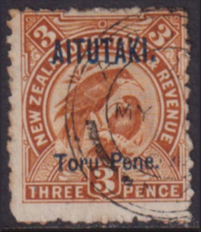 Aitutaki 1903 3d Huia. SG 5. Cat £18. FU. (Image)
