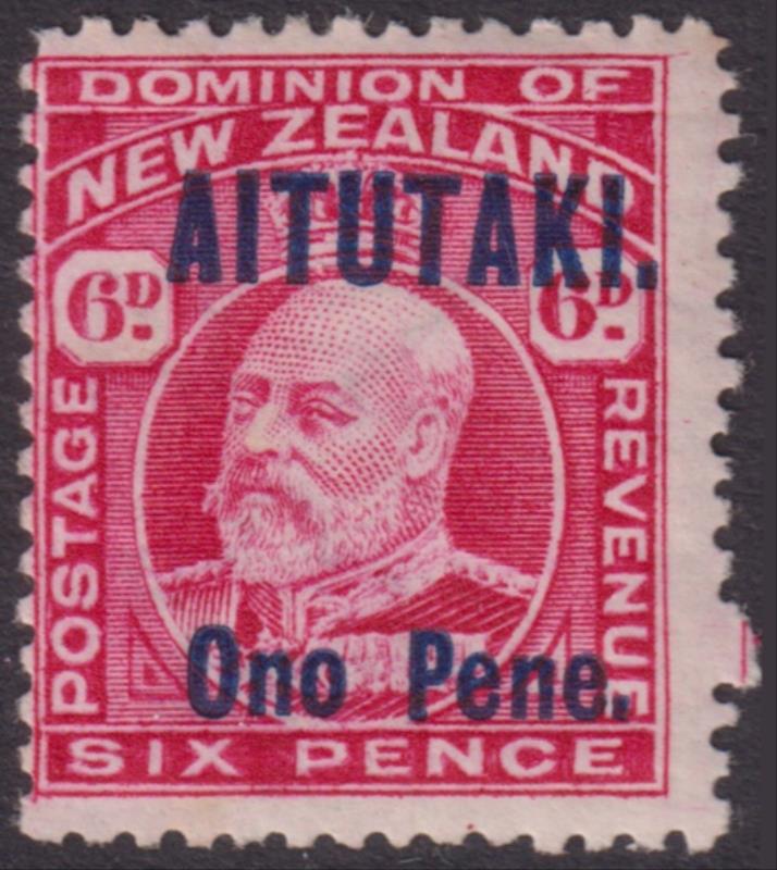 Aitutaki 1916 6d EVII carmine. SG 11. Cat £55. Mint. (Image)