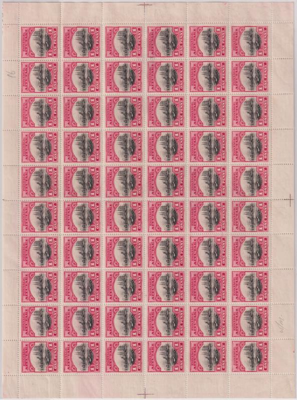 Aitutaki 1924 1d Wharf complete sheet of 60, incl all 3 double derrick flaws, wmk paper. SG 31a. Cat £390. MUH. (Image)
