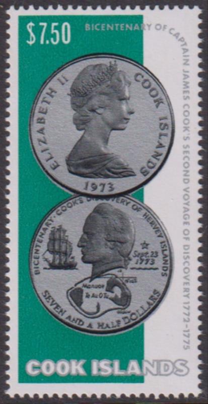 Cook Isl 1974 $7.50 Cooks 2nd Voyage Bicentenary. SG 493. Cat £16. MUH. (Image)