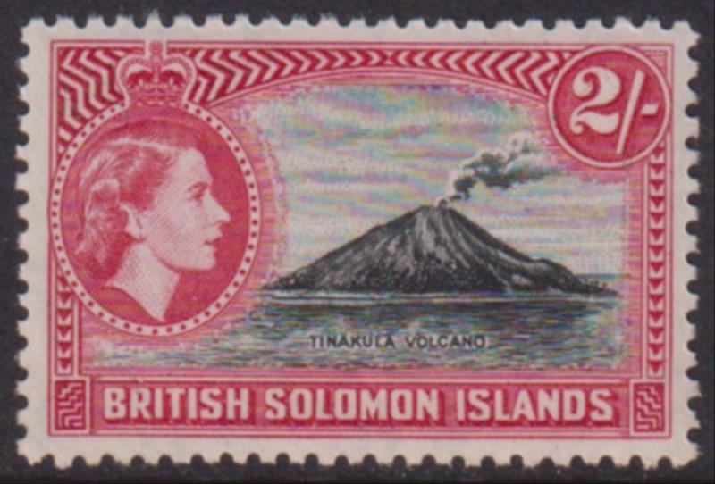 2344 * imageSolomon Isl 1956 2/- QEII & Volcano fresh. SG 92. Cat £20. MUH. (Image)