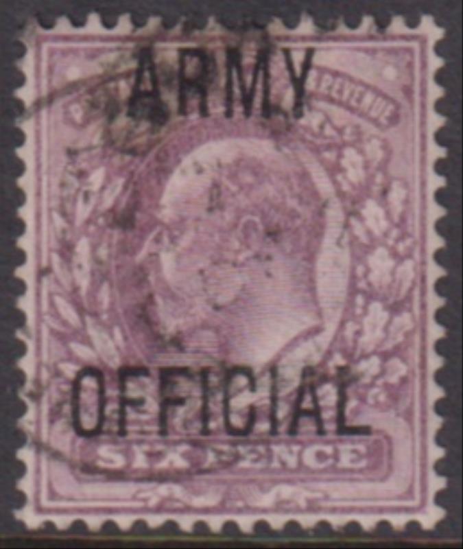 1902 6d EVII Army Official pale dull purple, fine cds. SG O50. Cat £65. FU. (Image)